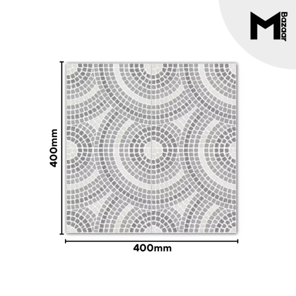 Improve your patio, pathway, or outdoor living area with our Gray Cobblestone Tile, available in a 400×400 mm format with a durable matte finish, its elegant concentric pattern brings sophistication and grip to high-traffic outdoor spaces.